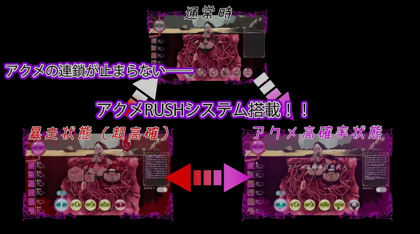通过同时刺激和连击组合,甚至可引发更高阶的”高潮暴走状态”——