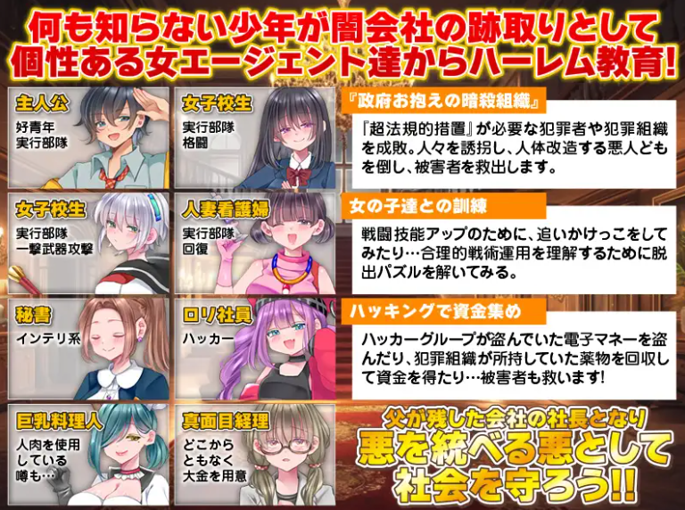 一无所知的少年作为黑暗公司的继承者,接受个性鲜明的女特工们的后宫式教育!