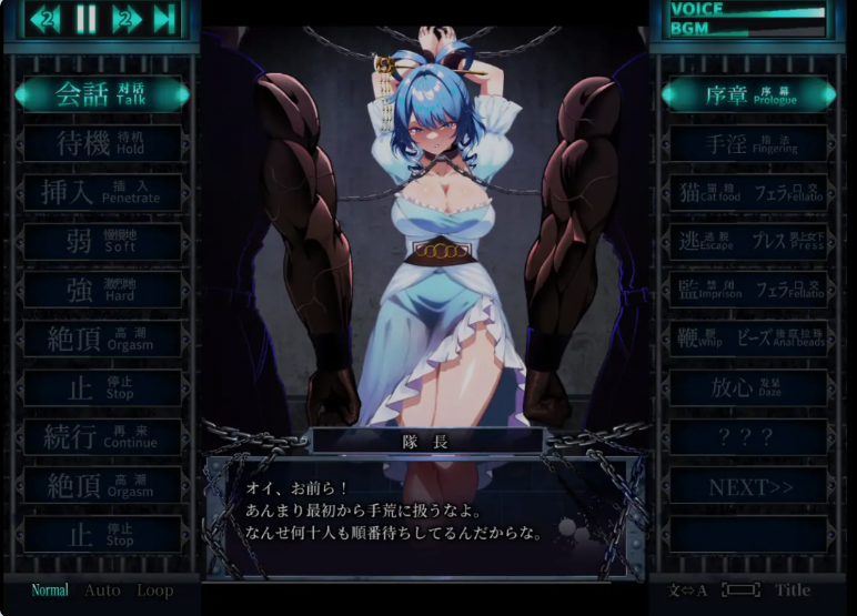 对话 → 待机 → 插入 → 轻柔 → 激烈 → 高潮 → 停止 → 继续 → 高潮 → 停止